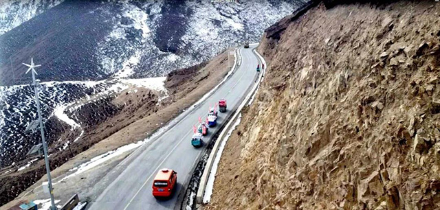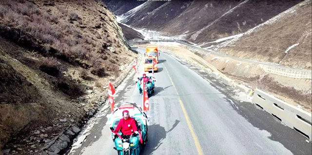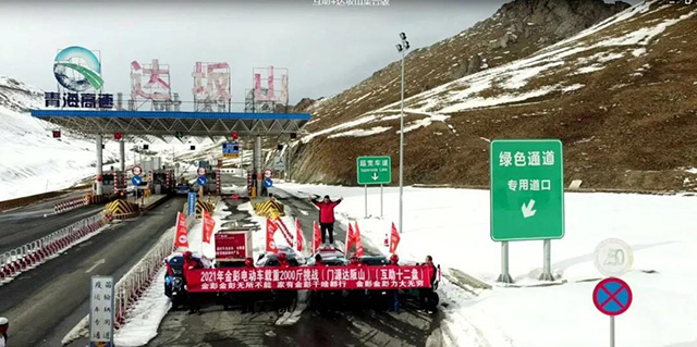 挑戰(zhàn)活動從北山十二盤坡坡底出發(fā),當時氣溫近-8℃,卻絲毫沒有影響挑戰(zhàn)的熱情。在保障安全的前提下,6名騎手駕駛著最大載重2000斤的金彭電動三輪車盤旋而上,最終總耗時約2小時成功抵達目的地。這條有著“青藏高原最美盤山公路”之稱的路線,見證了金彭不斷推動行業(yè)技術進步和服務用戶的堅定決心,再次夯實了金彭“山地車 大功率”的產品屬性。